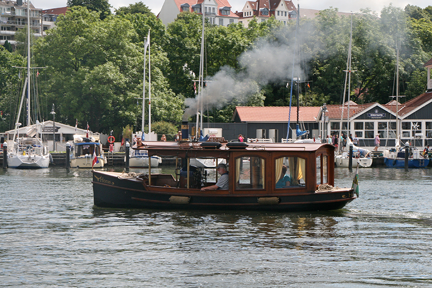 This was the motto of my tour with our testboat with a double installation of Dtorque 111 on Friday, 07 July 2017. It took me only 1 hr 45 min to drive the 45 nautical miles from Kiel to Flensburg for the 13th “Dampfrundum” (“steam all around”).